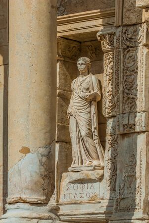 Statue of Arete (virtue/valor) which is located on the facade of library of Celsus in Greek ancient city of Ephesus, Turkey.