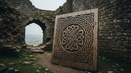 traditional celtic art, elaborate celtic designs on wood, traditional backdrop with space for text