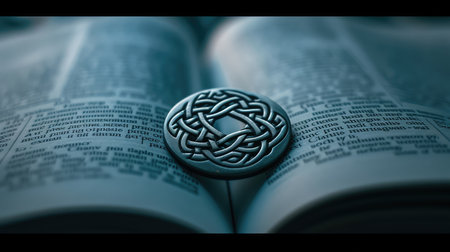 This captivating image showcases a Celtic seal adorned with intricate knotwork and glowing accents on a deep green background, evoking mystery and allure.