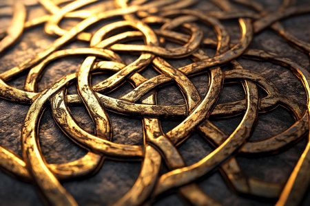 pattern featuring Celtic knotwork, characterized by interwoven lines and intricate geometric shapes from ancient Celtic art and metalwork. Generative AI