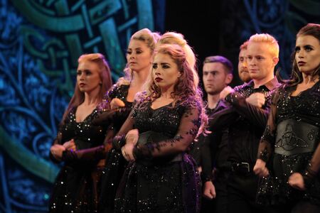 ODESSA, UKRAINE - September 17, 2019: step dance. Performance by the folk group Rhythm of the Dance. National Dance Group of Ireland at the Opera House. Step dance on the stage of national theater