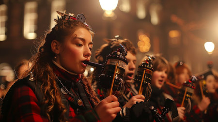Scottish Hogmanay Festival. The iconic Scottish song Auld Lang Syne is sung in unison as the clock strikes midnight, marking the end of one year and the beginning of a new one.