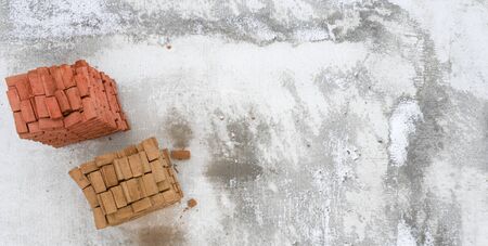 Construction brick at cement background. Brick and wall texture or floor