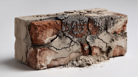 Old brick on white background. Close up. Selective focus.