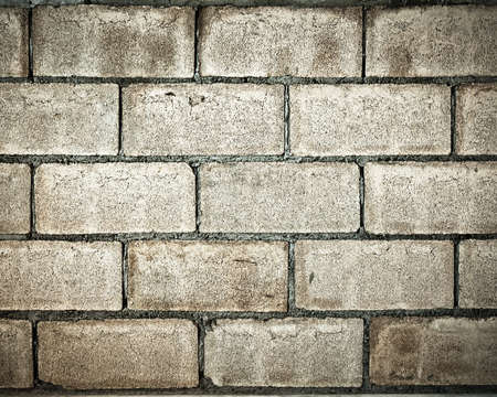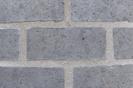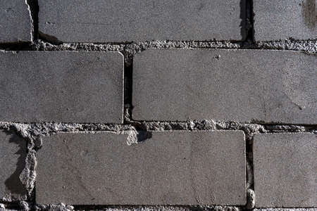 Texture of gray brick on the wall of the house. Cement between bricks. Autumn
