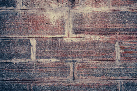 A close-up of an old, textured brick wall, with rough edges and weathered surfaces, showing the passage of time through its intricate imperfections.