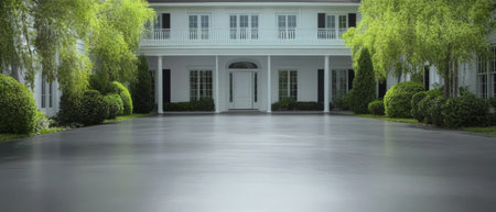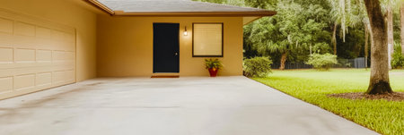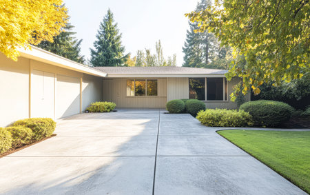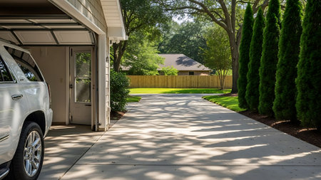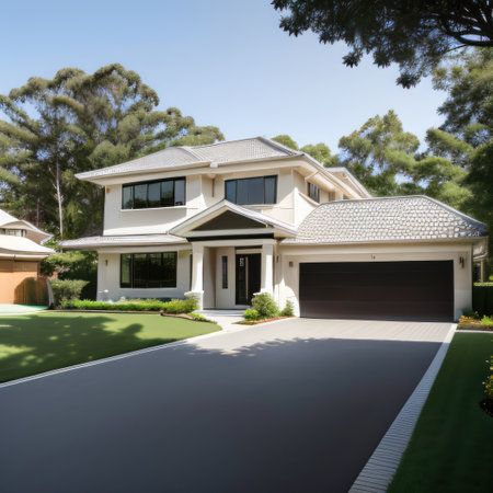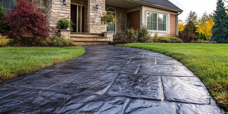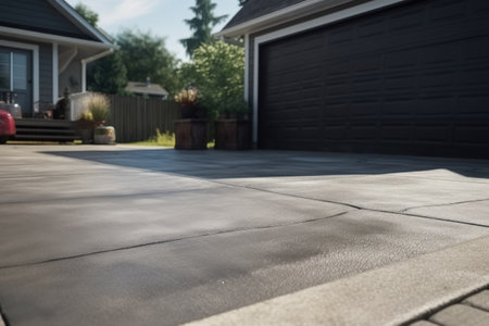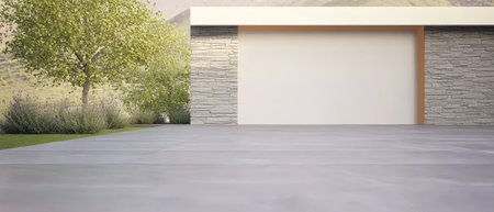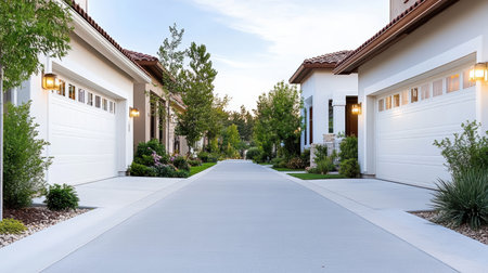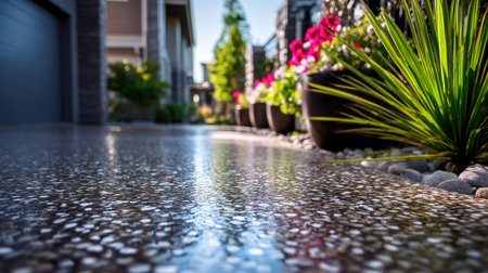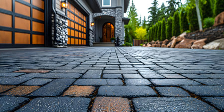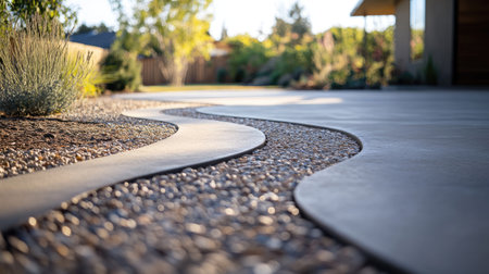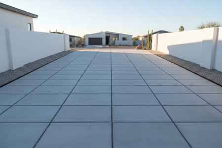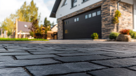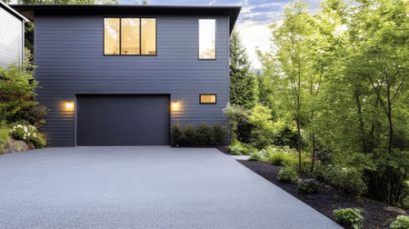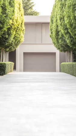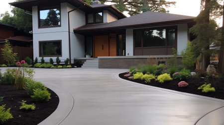 The clean lines and neutral tones of the driveway create a welcoming entrance to the modern home