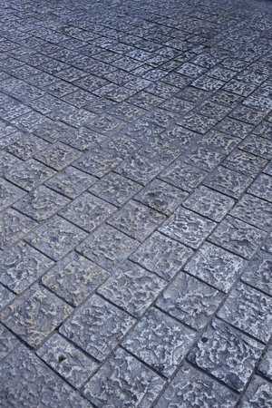 Perspective View of Monotone Gray Brick Stone on The Ground for Street Road. Sidewalk, Driveway, Pavers, Pavement in Vintage Design Flooring Square Pattern Texture Background,Floor tiles texture