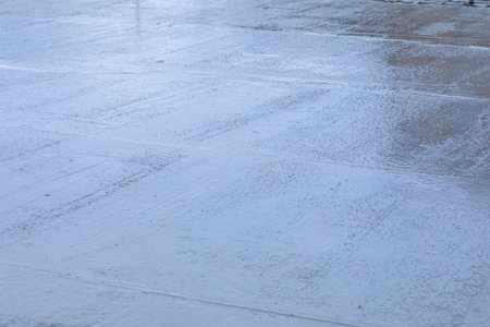 construction of a new road from concrete by technology, photo closeup from the construction site