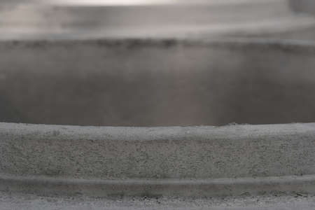 Concrete curbs for the improvement of walking and cycling paths in an urban environment. Selective focus background with shallow depth of field