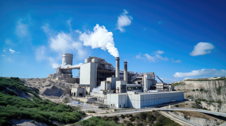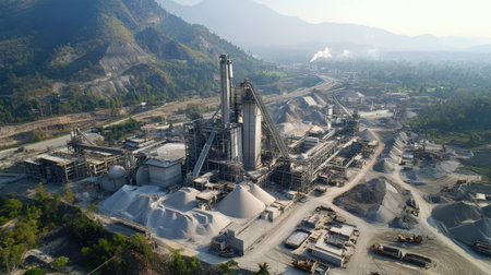 An industrial scenery of a cement factory working with modern equipment in Vietnam