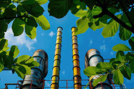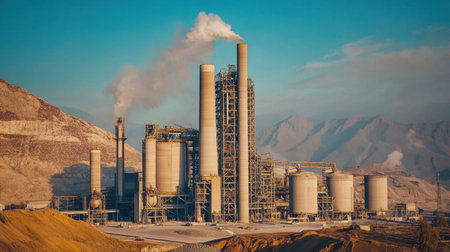chemical plant with smoke billowing from the chimneys, symbolizing industry and progress, created with generative ai