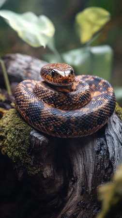coiled snake with stunning patterns in natural habitat, created with generative ai