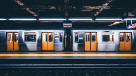 Futuristic Underground Station Platform with Illuminated Train and Minimalist Design for Transit