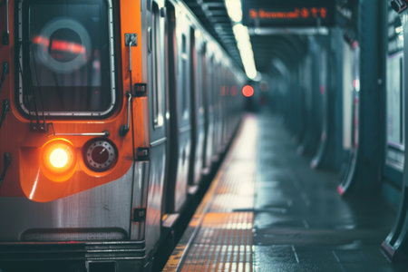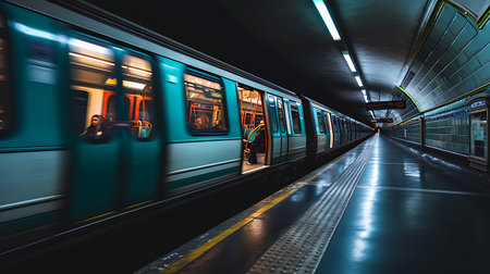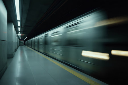 Energetic urban metro dynamic subway train speeds through tunnel with motion blur