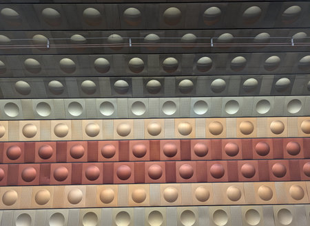 Closeup of Tactile Paving Tiles with Raised Dots on a Subway Platform, Shallow Depth of Field