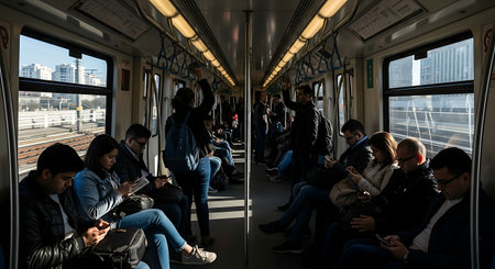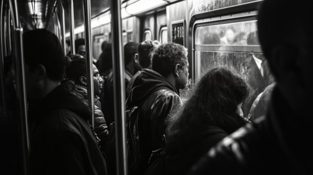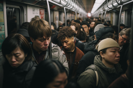 An AI generated illustration of A diverse group of people riding the subway together on their daily commute