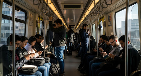 People using smartphones in Bucharest Metro.