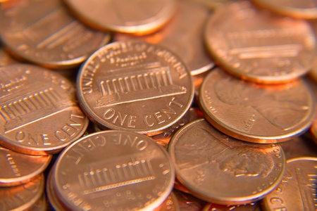 1 cent coin money (USD), currency of United States, selective focus