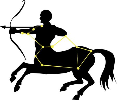 Zodiac sign Sagittarius with bow and arrow, vector illustration