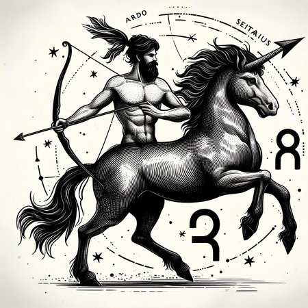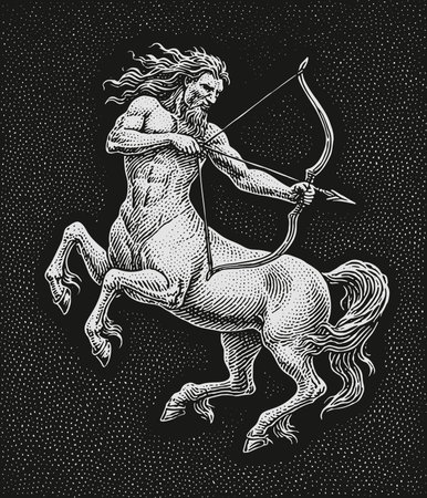 Sagittarius design illustration, engraving style.