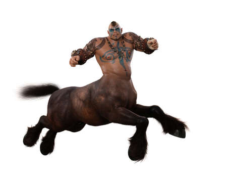 Male centaur fantasy man horse creature with muscular body and tattoos. 3D rendering isolated on white with clipping path.