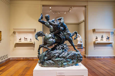 Schwerin, Mecklenburg-Western Pomerania Germany - August 11, 2013 The Photography of the Sculpture Heracles, the Cretan bull curbing by sculptor August Kriessmann on August 11, 2013 in Schwerin Castle Garden