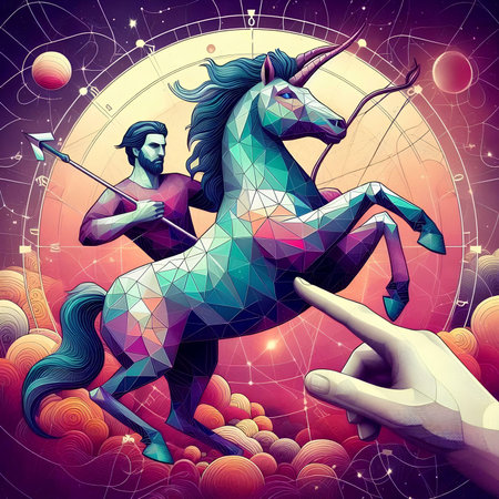 Zodiac sign Sagittarius. Polygonal illustration of a man on a horse with a bow and arrow.