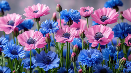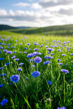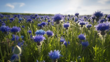 Magic blue cornflower meadow strong blue. Created with Generative AI technology