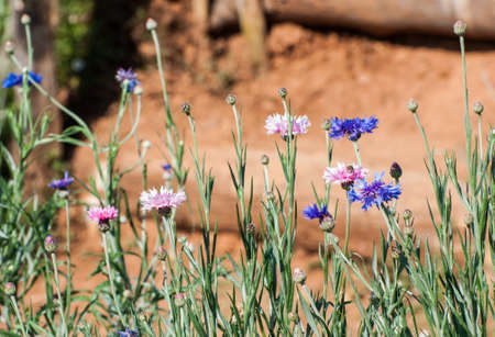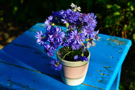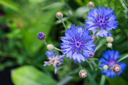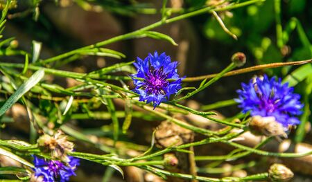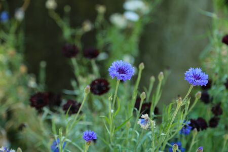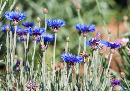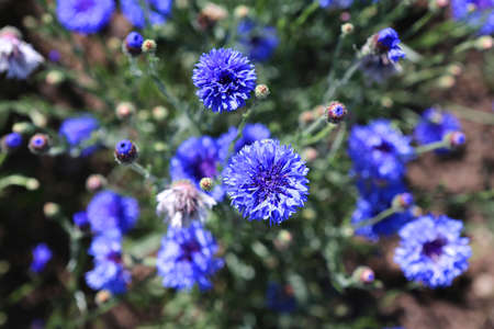 Blue flowers cornflowers in the garden. Cornflower in the flowerbed. Summer Blue wildflower. cornflowers.