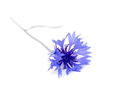 Close up of single beautiful blue cornflower in Summer growing in an organic country English garden in a wild flower meadow