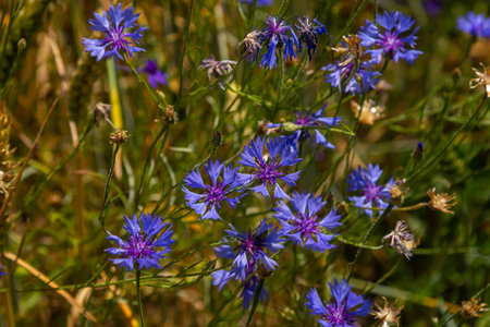 Closeup of Centaurea cyanus, commonly known as Cornflower, in Japan