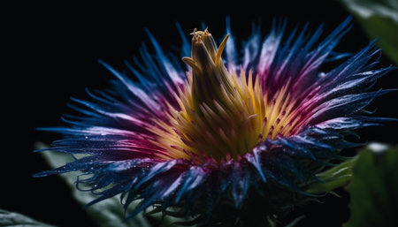 Vibrant tropical flower in sharp focus, surrounded by sea life generated by artificial intelligence