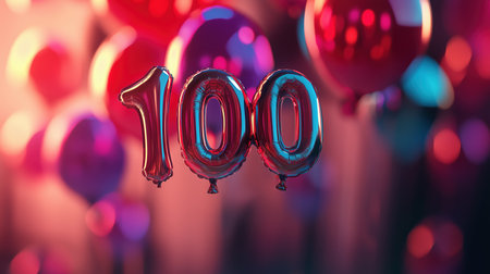 Background with balloons in the shape of the number 100. Perfect for birthdays, anniversaries, holidays. High quality photo