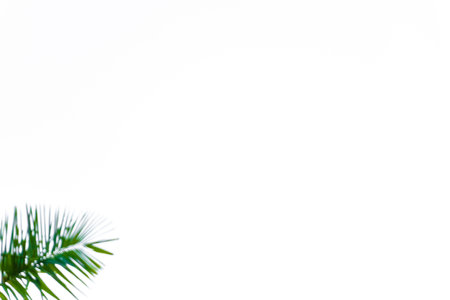 Blue and white sky with clouds and tropical palm trees in Playa del Carmen Quintana Roo Mexico.