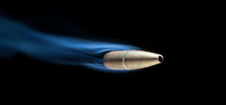 Banded bullet that is moving with smoke behind