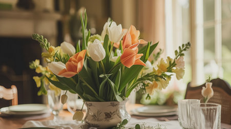 festive table dressing in spring colors,ready for event celebration.