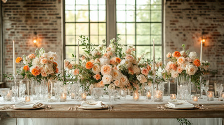 Elegant candlelit banquet table with floral centerpieces and fine tableware in lavish setting. That the image is generated using AI