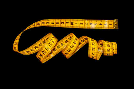 Yellow measuring tape isolated on a black background.
