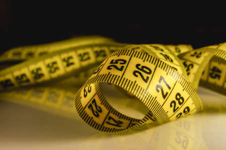 Yellow white tailor tape measure to take measurements and measure
