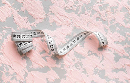 Yellow measuring tape on a pink background. Close-up