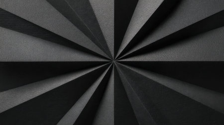 A striking black and gray geometric background featuring radiating fan shapes designed for modern art, interior design, and contemporary projects.