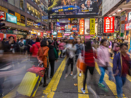 HONG KONG - OCT 22 2016: Street Traffic in Hong Kong. People Crowd at Pedestian, Mongkok