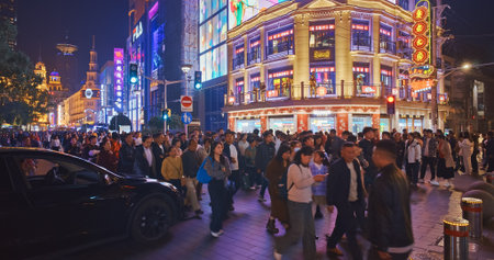SHANGHAI, CHINA-SEPTEMBER 7:Tourists walk around Nanjing Road in Shanghai on September 7, 2013. Nanjing Road is the main shopping street of Shanghai and is one of the world's busiest shopping streets.