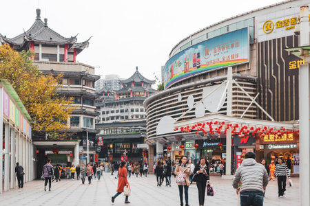 Changsha/China-17 October 2018:Unacquainted People walking on huangxing walking street in Changsha city China.changsha is the capital and most populous city of Hunan province in china