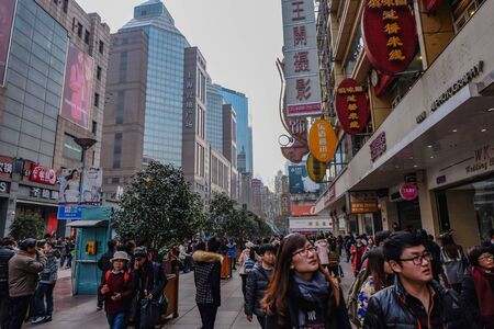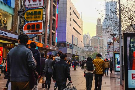 Shanghai/China - January 24 2015: People walking in Nanjing Road Walking street in shanghai city china