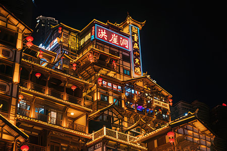 People at the Jiefangbei Pedestrian Street in Chongqing at night