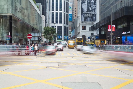 Hong Kong, China - November 19, 2013: Busy intersection in Central, Hong Kong. Central is the central business district in Hong Kong, with many headquarters of multinational financial coperations in the area.