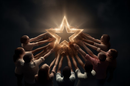 Handforming Constellations: A Group of People Creating a Starry Wonder --ar 3:2