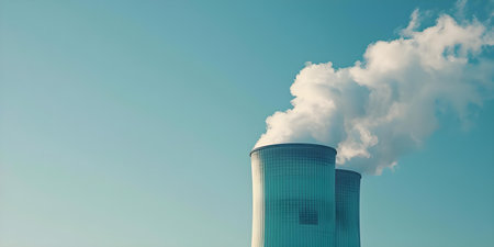 Nuclear power plant generating clean energy is crucial in the shift to sustainable power sources. Concept Clean Energy, Nuclear Power, Sustainability, Power Generation, Environmental Impact